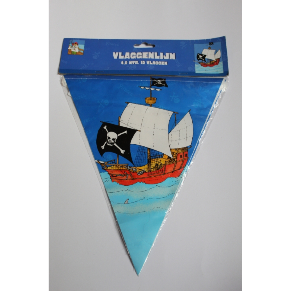 Een Vlaggenlijn van de blauwe piraatjes met een lengte van 4,2 meter dat zijn 12 vlaggen.