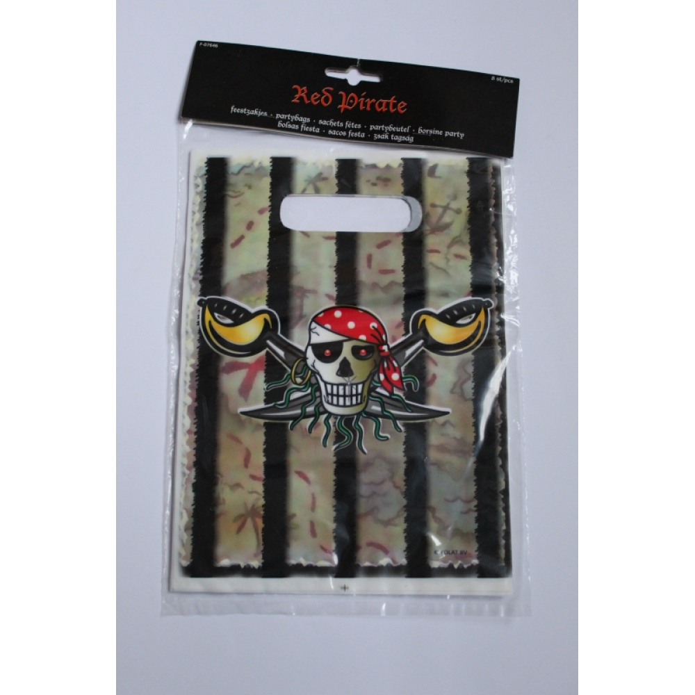 Zakje met 8 feestzakjes van de red piraat.