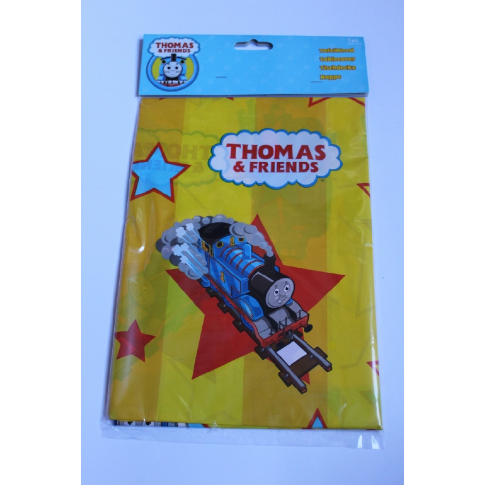 Een leuk, vrolijk tafelkleed van Thomas de trein. Het tafelkleed is geel met diverse afbeelding van Thomas de trein erop. Het tafelkleed heeft een afmeting van 180x120cm.