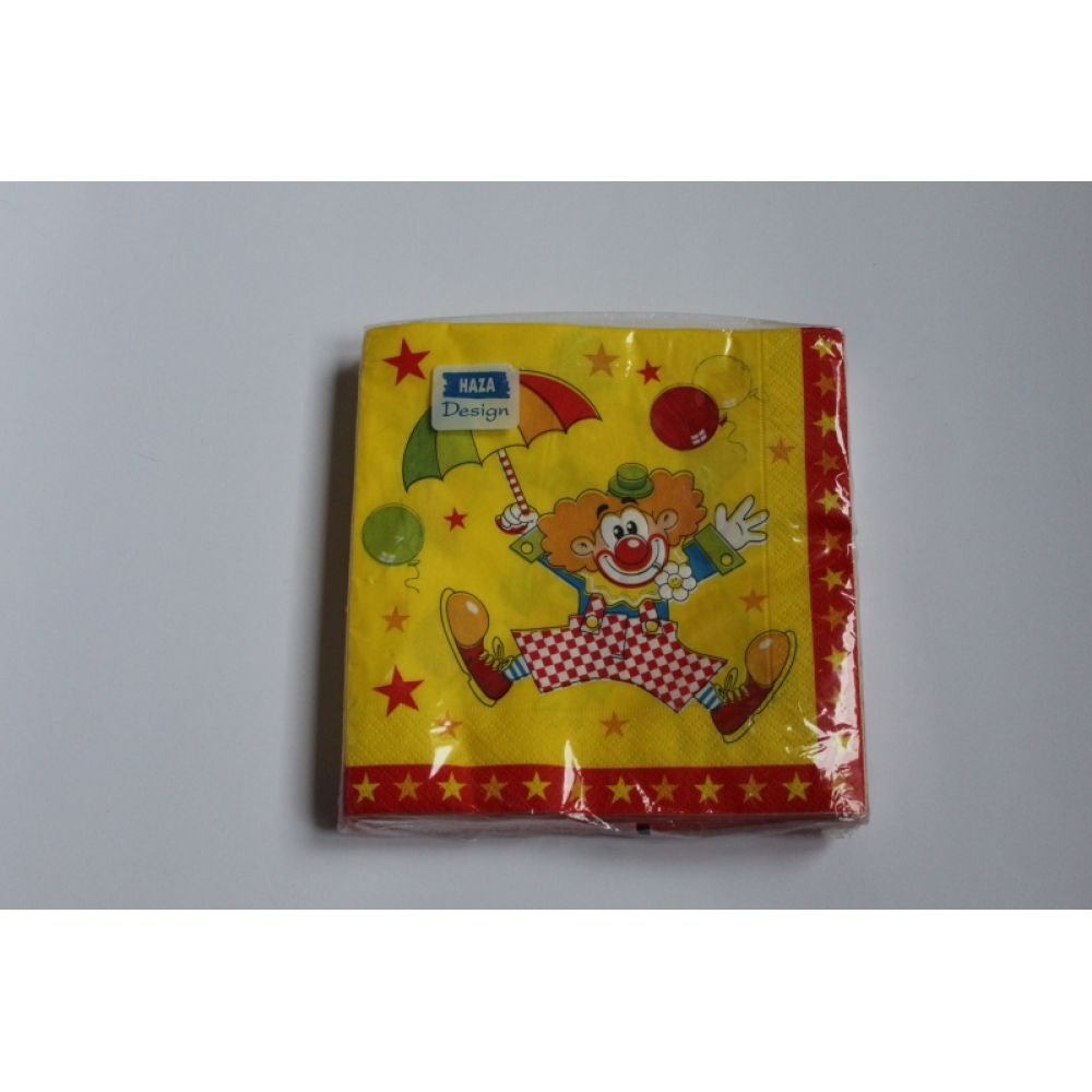 Een pakje 20 servetten met een vrolijk dansende clown erop.