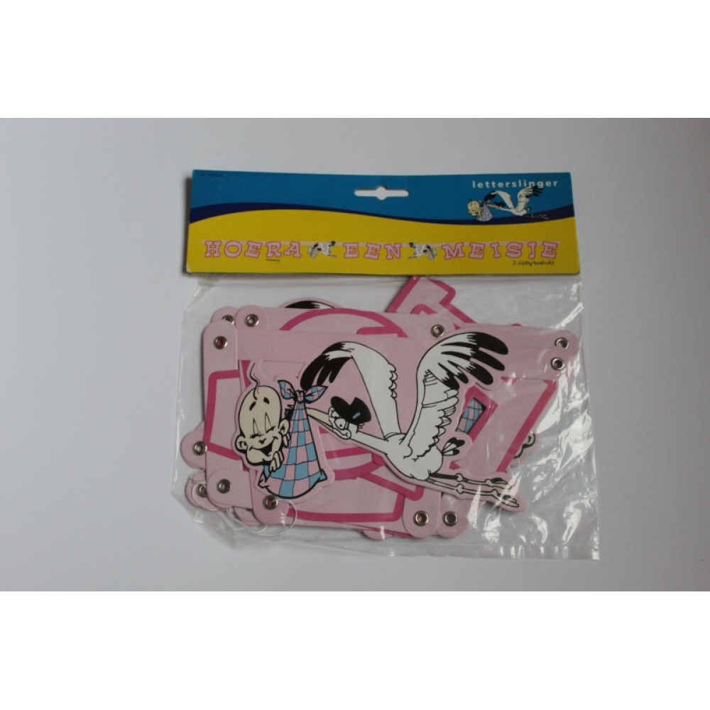 De letterslinger is dubbelzijdig, dus aan beide kanten is te lezen: Hoera een dochter.