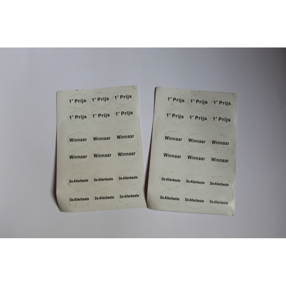 Op de beker kan een sticker geplaatst worden met daarop bijvoorbeeld: 1e prijs, winnaar