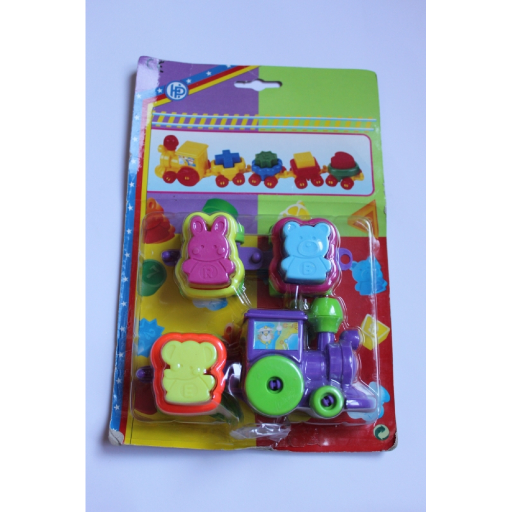 In elke wagon zit een puzzelstukje, elk in een andere vorm.