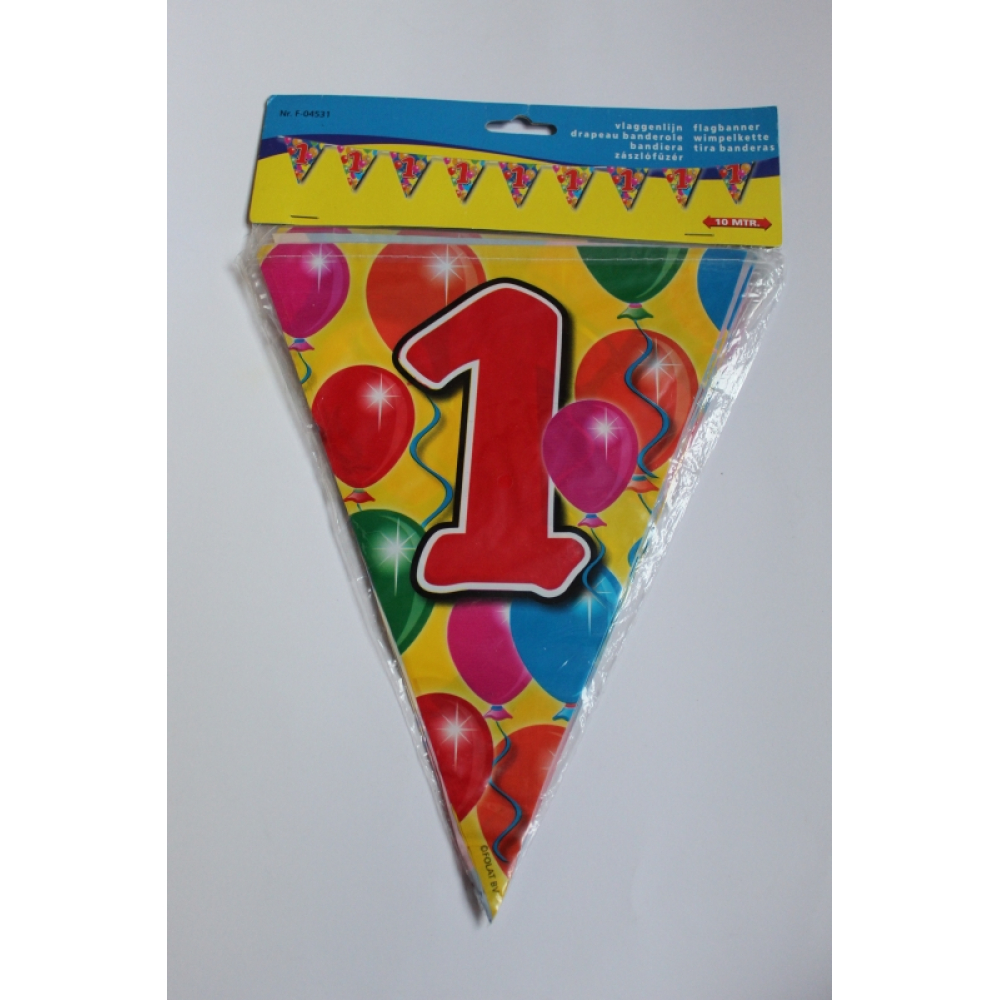 Een vlaggenlijn van 10 meter met de leeftijd 1 erop.