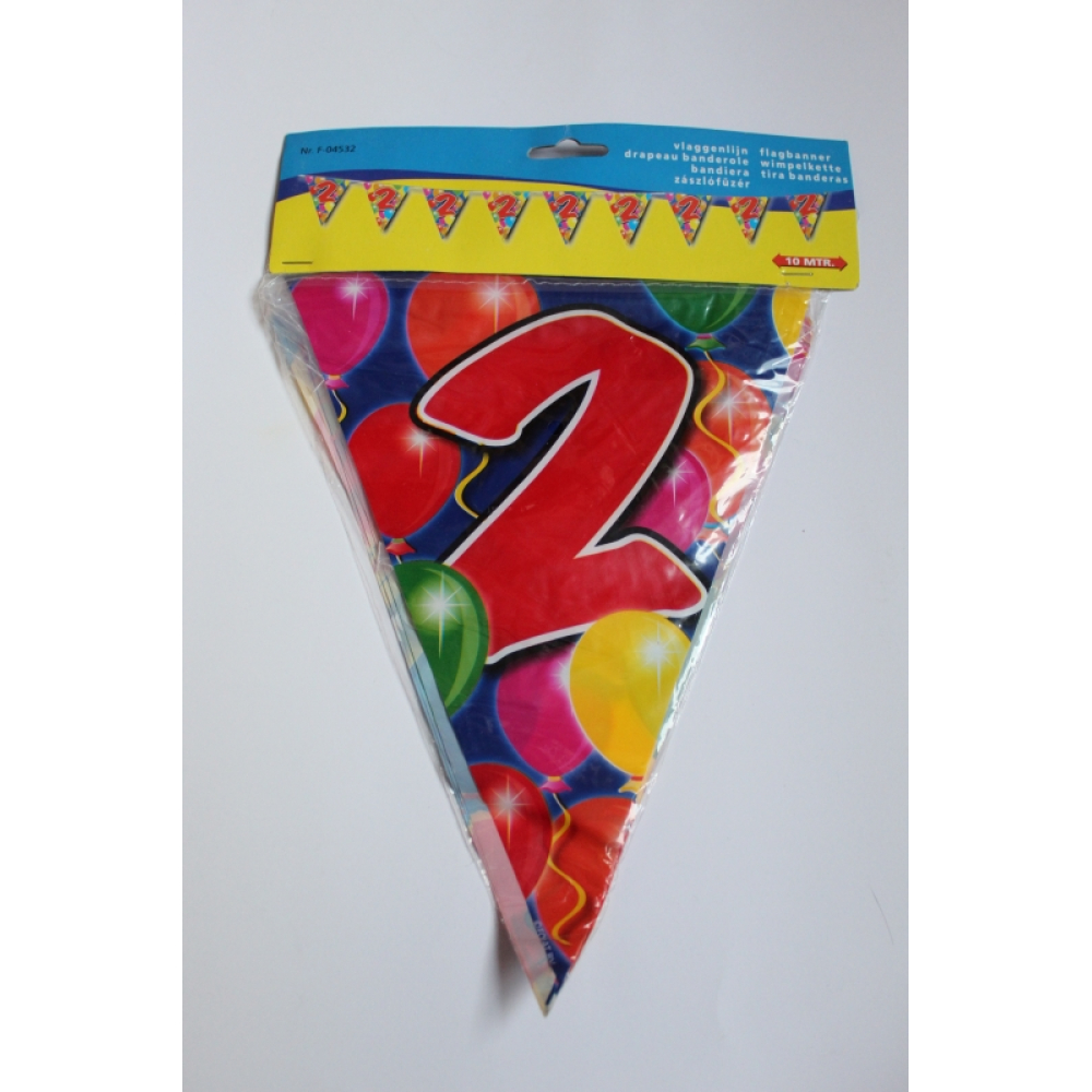 Een vlaggenlijn van 10 meter met de leeftijd 2 erop.