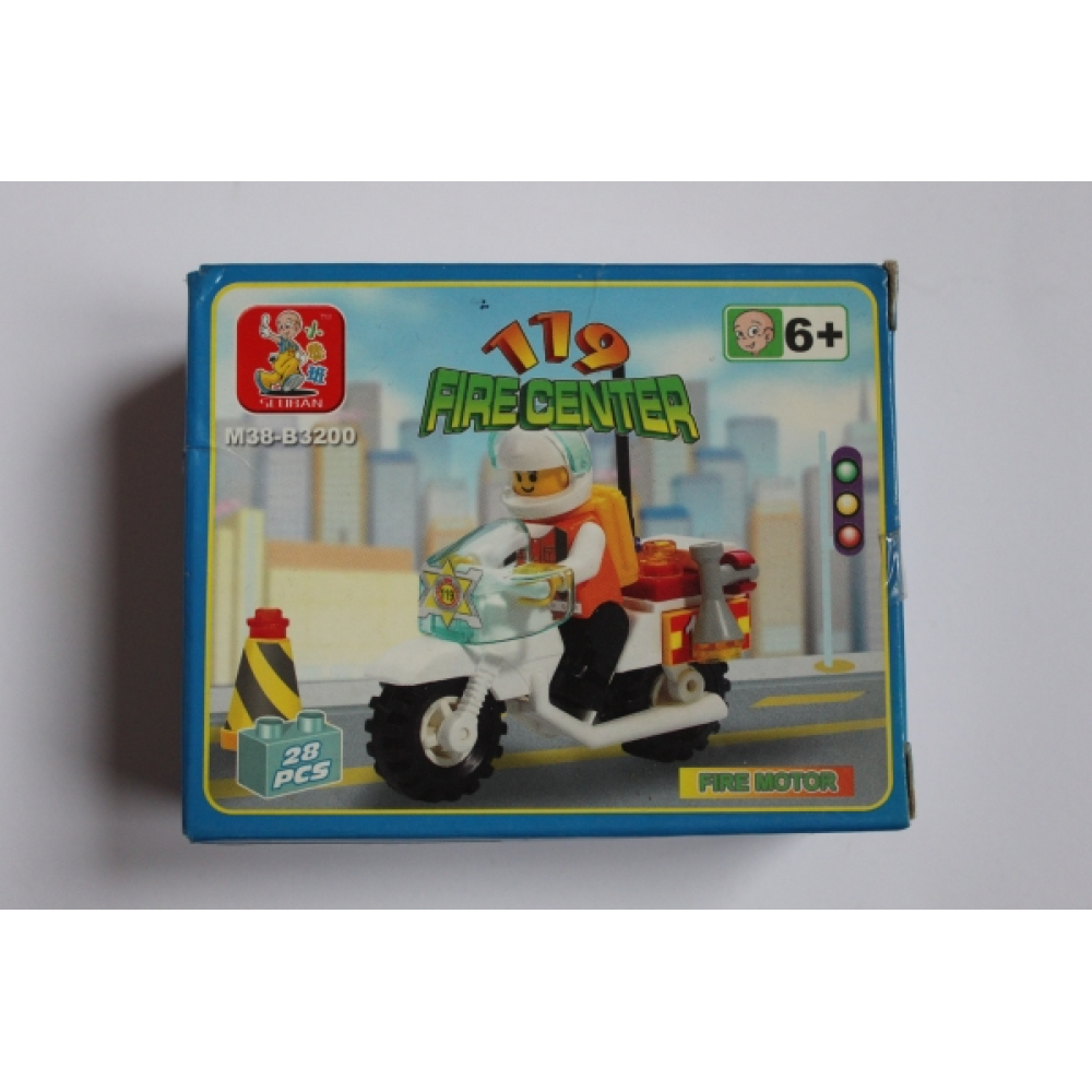 Hierbij de Motorrijder (M38-B3200) 119 Firecenter; een motor met een mannetje die de weg kan afzetten.
