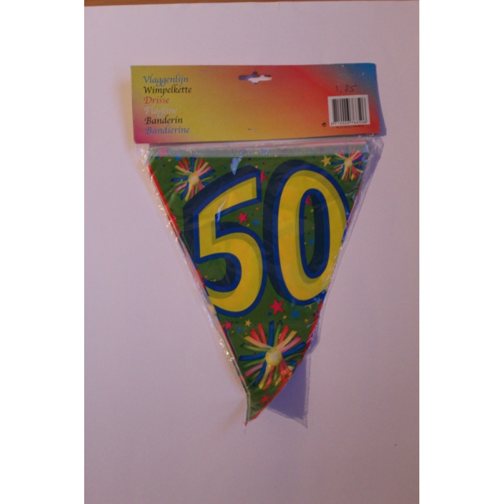 Een vrolijke vlaggenlijn met 50 erop.