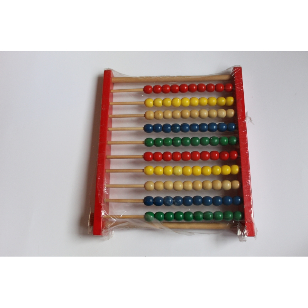 Een houten telraam met 100 kralen verdeeld in rijen van 10.