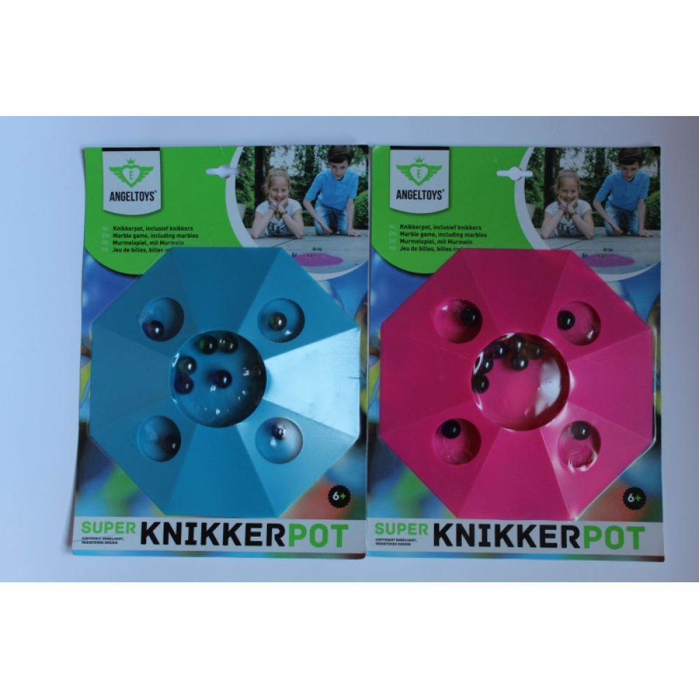 Met deze knikkerpot en knikkers zou je zelfs met slecht weer binnen kunnen knikkeren.
