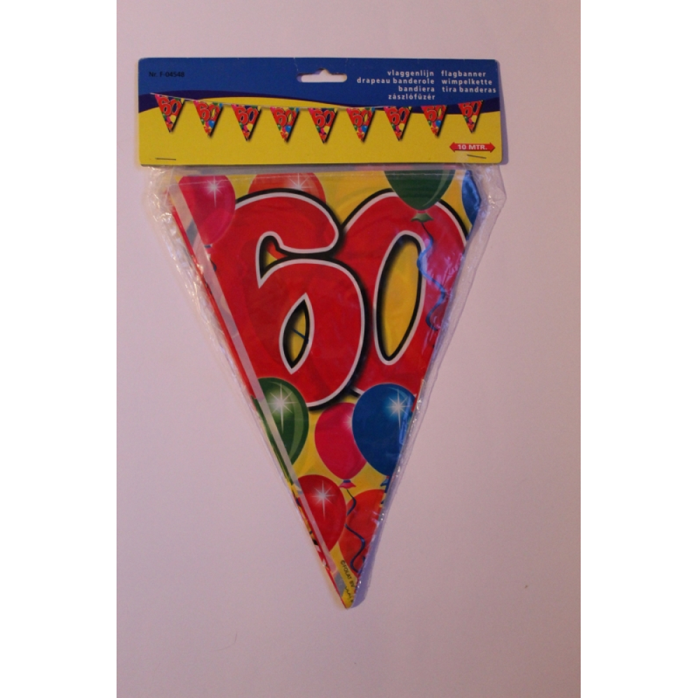 Een vlaggenlijn van 10 meter met de cijfer 60 erop.