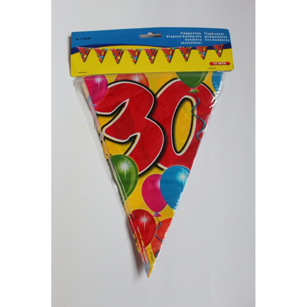 Een vlaggenlijn van 10 meter met de cijfer 30 erop.
